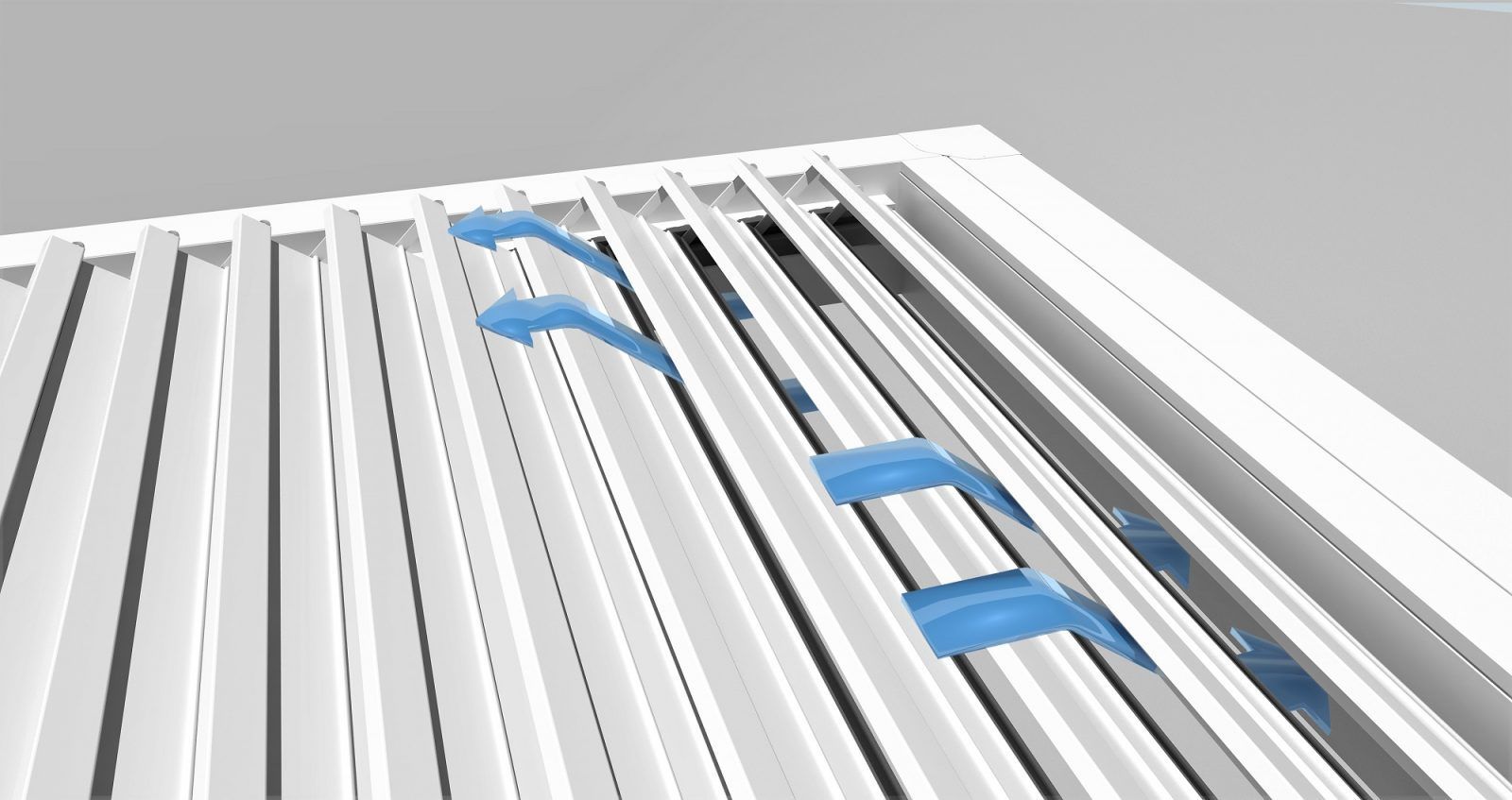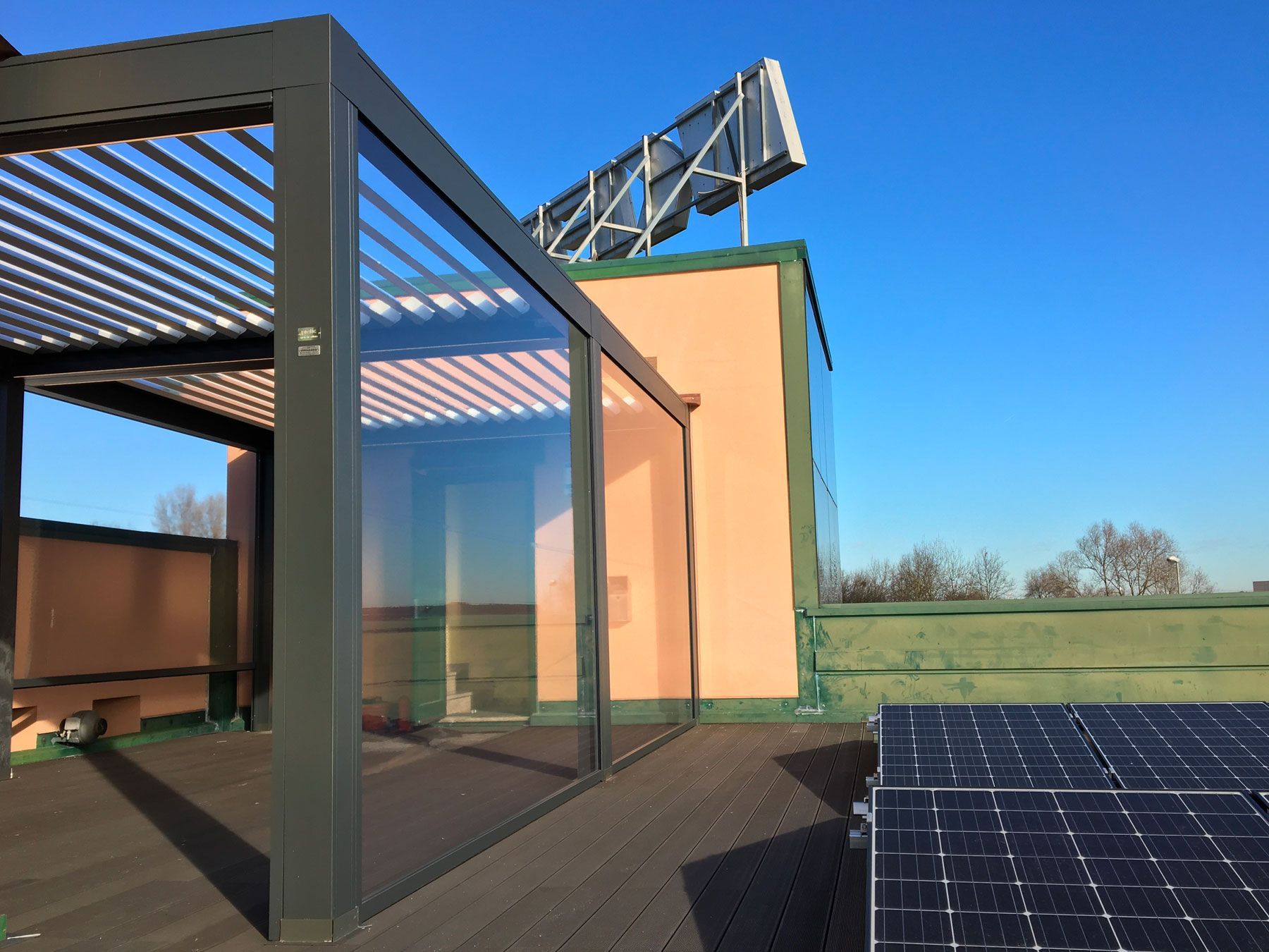 Le nostre pergole bioclimatiche grazie alle lame frangisole in alluminio orientabili fino a 140 gradi e retraibili permettono di modulare ventilazione e luce, sfruttando unicamente gli elementi già presenti nell'ambiente naturale.